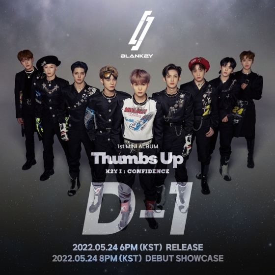 블랭키(U, DK, 소담, 루이, 영빈, 시우, 성준, 마이키, 동혁)는 오는 24일 오후 6시 각종 온라인 음원 사이트를 통해 첫 번째 미니앨범 'K2Y I : CONFIDENCE Thumbs Up(키원 컨피던스 떰즈업)'을 발매, 오후 8시에는 온·오프라인 쇼케이스를 개최해 팬들과 만난다.