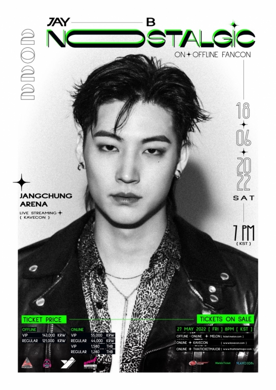 GOT7 리더이자 솔로 아티스트로서 팬들과 가깝게 소통할 JAY B의 단독 팬콘 '2022 JAY B "NOSTALGIC" ON·OFFLINE FANCON'은 오는 6월 18일 오후 7시 서울 장충체육관에서 개최되며, KAVECON을 통해 전 세계에 라이브로 스트리밍된다. 공연 관련 자세한 정보가 담긴 티켓 판매 페이지는 5월 24일 한국 시간 오후 8시 오픈될 예정이다. VIP와 일반으로 이루어진 이번 관람권은 5월 27일 한국 시간 오후 8시부터 오프라인: 멜론티켓, 온라인: 멜론티켓/케이브콘(KAVECON)/TTM(Thaiticketmajor)에서 판매가 시작된다.