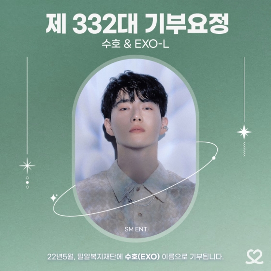 그룹 EXO의 수호가 5월 22일 생일을 맞이하여 아이돌 순위 서비스 '최애돌'에서 1위, 배우로서 '최애돌셀럽'에서 1위를 동시에 달성하며 각각 기부요정으로 선정됐다.