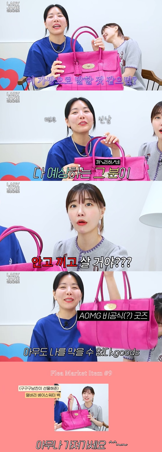이어 레이디제인은 "언제까지 이걸 안고 끼고 살 거냐"라며 "큰 가방을 좋아하시는 분들, 컬러가 부담스러울 수 있지만 의외로 여기저기 잘 어울린다"며 가방을 추천했다.