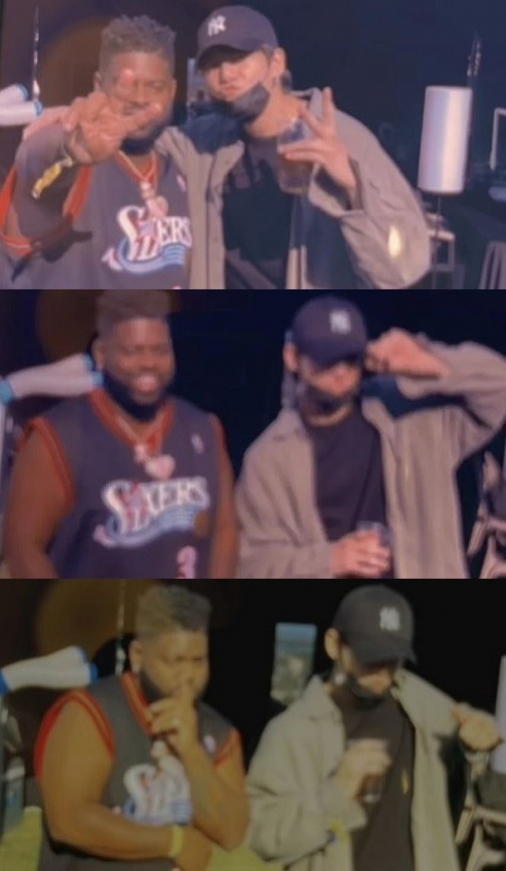 정국과 핑크 스웨츠는 어깨동무를 하고 스웨그 넘치는 제스처부터 리듬에 그루브를 타는 몸짓 등을 연출하며 멋짐 폭발하는 투샷을 선사했다.
