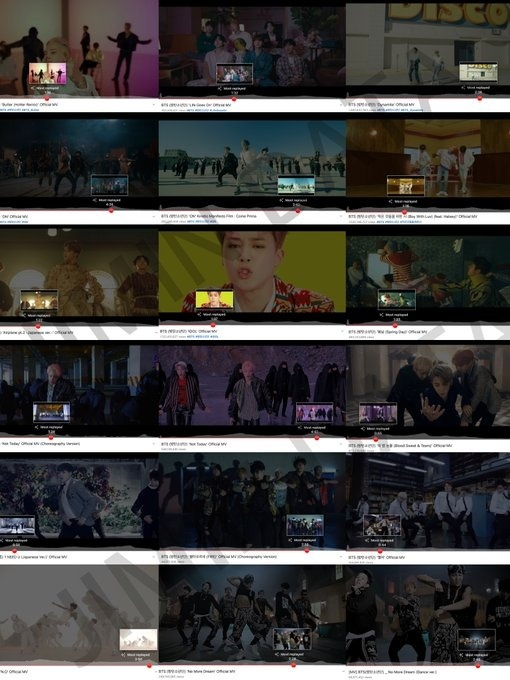 매체에 따르면 지민의 파트는 식스팩 복근 퍼포먼스의 '노 모어 드림', 댄스 브레이크의 혁명 'ON'은 물론 '피땀눈물'과 '불타오르네', '낫투데이', 'N.O', '쩔어', 'Danger', '아이 니드 유', '봄날', '아이돌', '작은 것들을 위한 시', '라이프 고즈 온', '버터' 등의 공식 뮤직비디오에서 가장 많이 재생된 것으로 나타났다.