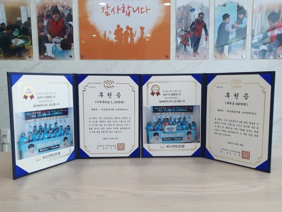 부산 영웅시대 스터디하우스는 2020년 11월부터 김장 봉사, 도시락 나눔, 빨래방 후원, 내의 기부 등 봉사를 이어가고 있다. 특히 도시락 봉사는 매달 50만원 후원과 직접 조리와 나눔 봉사도 하고 있다. 총 누적 기부금은 1170만 원이다.
