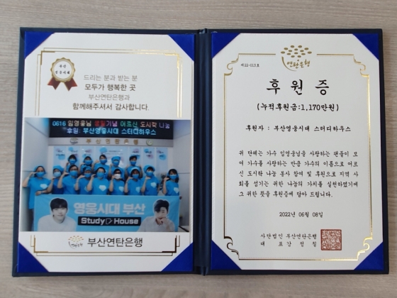 부산 영웅시대 스터디하우스는 "앞으로도 계속 임영웅을 위한 스터디와 함께 봉사하는 부산 영웅시대가 될 것"이라고 전했다.