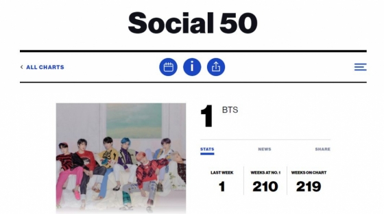 이후 빌보드 소셜50 차트는 방탄소년단이 통산 210번째 1위 수성이자 통산 219주 차트인에 성공한 2020년 12월 26일자 차트 이후 현재까지 업데이트를 하지 않고 있다. 이와 관련, 빌보드 음악 출판 파트는 "새로운 데이터 파트너를 통해 빌보드 소셜 50 차트를 재편하기 위해 논의하고 있고 아직 새롭게 재편되는 구체적인 날짜는 발표되지 않았지만 빌보드는 2021년 초에 리부팅할 것으로 예상하고 있다"라고 밝힌 바 있지만 사실상 빌보드 소셜50 차트의 재가동은 당장 보긴 힘들어 보이는 흐름이다.