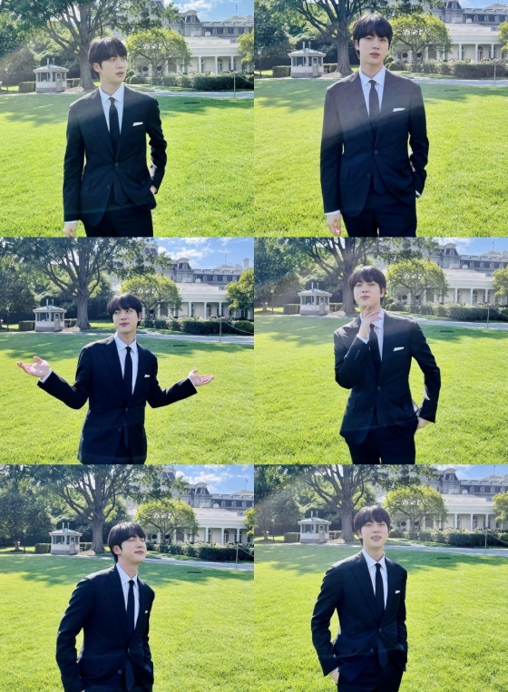 진의 넓은 어깨와 긴 팔다리, 날씬한 몸매는 그를 더욱 돋보이게 하며 말끔한 모습으로 여러 장의 사진을 공개해 팬심을 설레게 했다.
