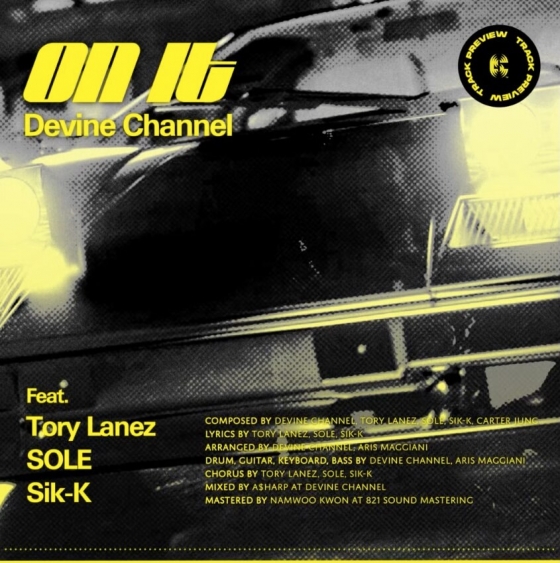 코드쉐어(Chord Share) 측은 지난 14일 오후 공식 SNS를 통해 오는 16일 오후 6시에 발매되는 디바인채널의 새 싱글 'On It (feat. Tory Lanez, SOLE, Sik-K)'의 트랙 프리뷰 영상을 공개했다.