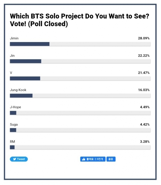 이미 명실상부 '최고의 아이돌'로 불리는 지민의 인기는 대적할 상대가 없었다.