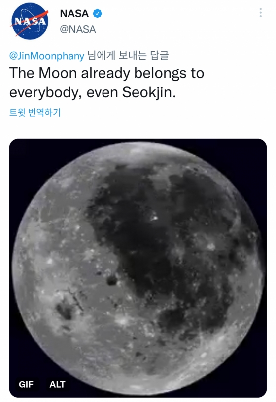 이 곡과 관련해 미국 항공우주국 NASA는 방탄소년단 진에게 달을 줬으면 좋겠다는 한 트위터리안의 글에 '달은 이미 모두의 것이다, 석진에게도'(The Moon already belongs to everybody, even Seokjin)라고 진의 본명(김석진)을 언급한 답으로 화제를 모으기도 했다.