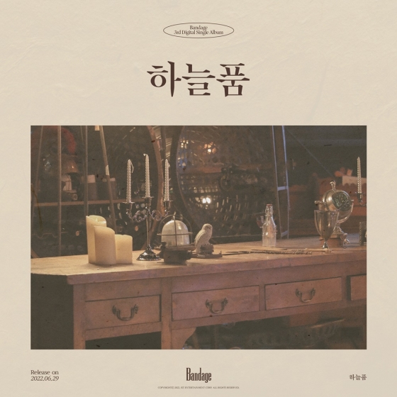 공개된 커밍순 이미지는 발매일자와 디지털 싱글명 '하늘품'을 공개하는 동시에, 양초와 촛대, 유리병, 앤티크한 분위기의 서랍장 등 전체적으로 밴디지만의 서정적인 감성이 느껴지는 이미지로 밴디지가 이번엔 또 어떤 감성 밴드 사운드를 선사할 지 기대감을 상승시켰다.