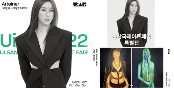 김완선은 28일 자신의 인스타그램을 통해 초청받은 울산국제아트페어에서 7월 1일부터 7월 3일까지 특별전이 열리는 사실을 공개했다.
