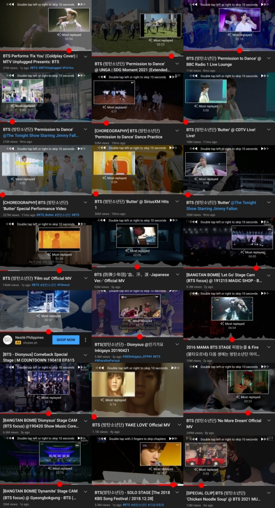 매체는 최근 유튜브가 동영상에서 어느 부분을 가장 많이 재생했는지 확인할 수 있도록 서비스를 업데이트 한 것에 대해 언급하며 "방탄소년단 팬들이 가장 인기 있는 공연 영상을 추적했고, 그 중 진이 부른 구절이 대부분의 노래에서 가장 많이 재생된 부분"이라고 전했다.