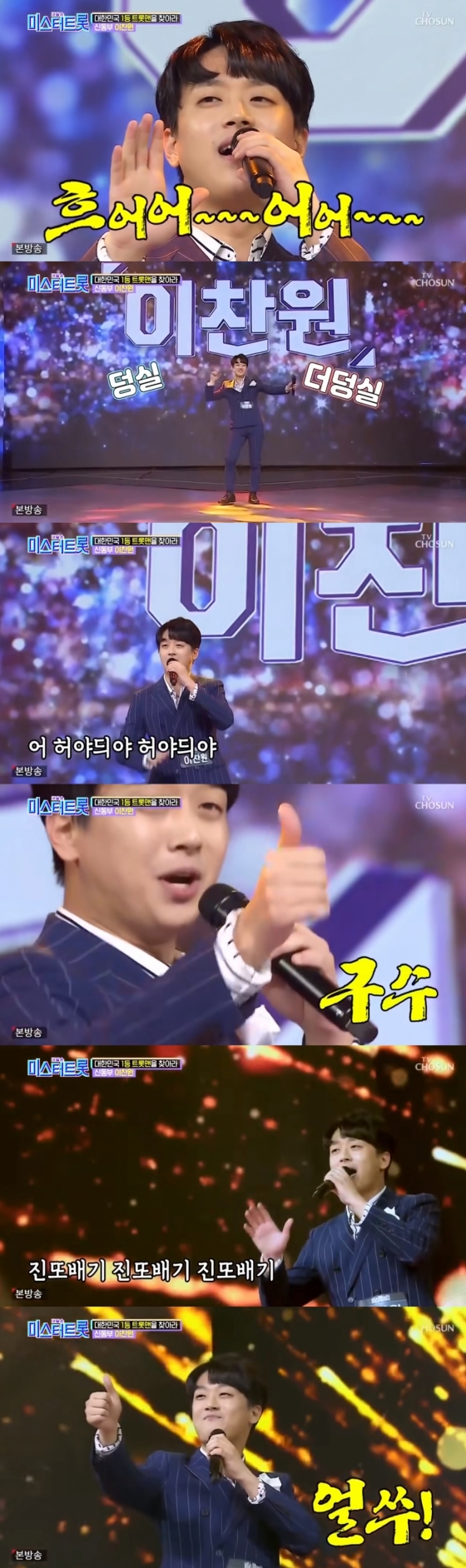 영상에서 신동부로 무대에 오른 이찬원은 '흐어어~어어~'하는 일성으로 노래 시작 전부터 심사위원과 시청자들을 사로잡았다.