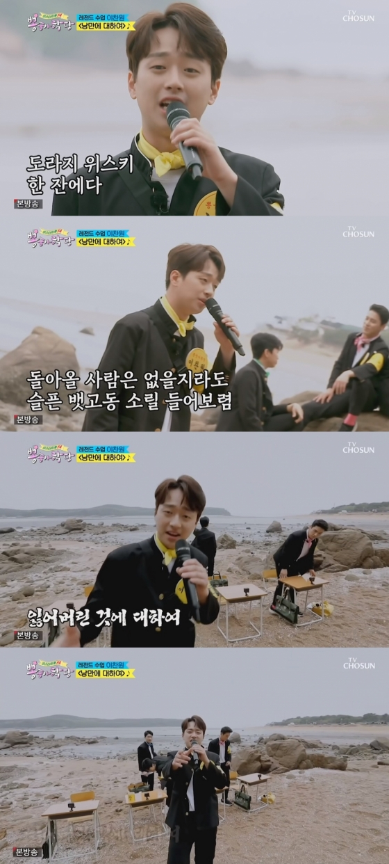 영상에는 TV조선 '뽕숭아학당'에서 이찬원이 선보인 최백호의 '낭만에 대하여' 무대가 담겼다.