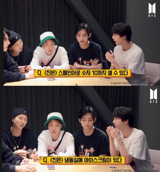 마지막 질문으로 '진은 냉동실에 아이스크림이 있다'라는 질문을 읽었고 멤버들은 다시 '있다' '없다'로 의견이 분분했다. 진은 자신의 냉장고에 아이스크림이 50개가 있다고 밝혔다.