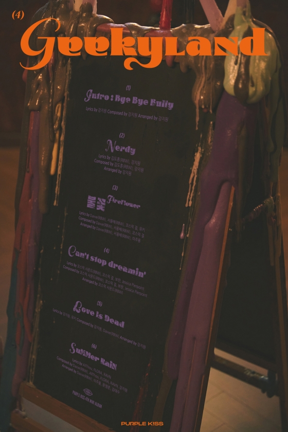퍼플키스(박지은·나고은·도시·이레·유키·채인·수안)는 지난 10일 공식 SNS를 통해 네 번째 미니앨범 'Geekyland'(기키랜드)의 트랙리스트 이미지를 공개했다.