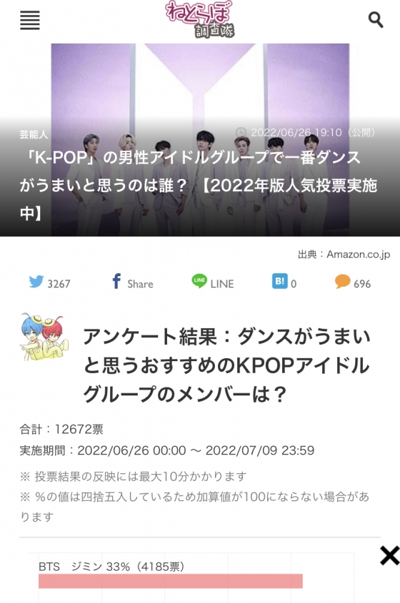 NETLAB 투표는 일본에서만 투표가 가능해 지민의 일본내 K팝 최고의 댄서이자 가수로서의 높은 인지도와 위상을 짐작케 한다.