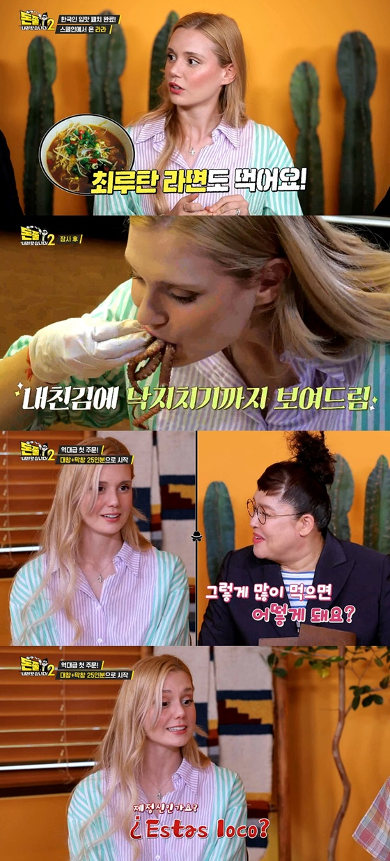 하지만 이후 투입된 수향, 아미, 쑤다가 더 엄청난 곱창 먹방을 선보이고, 이영자가 "스페인에서 이렇게 많이 먹으면 뭐라고 하는가"라고 묻자 라라 베니또가 "약간 제정신인가"라고 답했다는 후문이다. 이날 오후 8시 30분 방송.