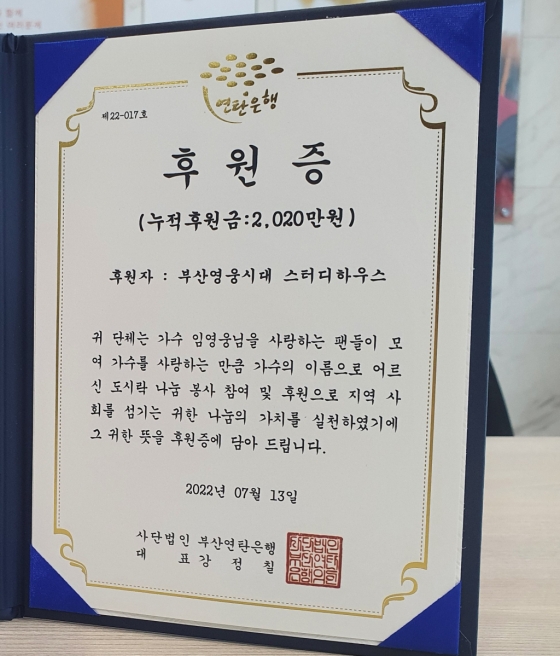 부산영웅시대 스터디하우스는 "앞으로도 계속 임영웅을 위한 스터디도 하면서 봉사도 함께하는 부산 영웅시대가 될 것"이라고 전했다.