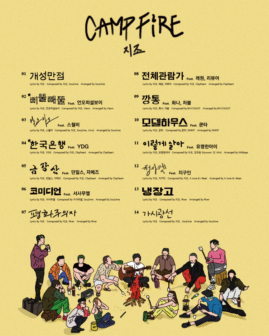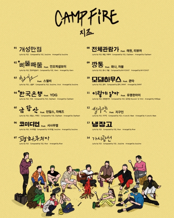 이외에도 'CAMPFIRE'에는 래원, 리뷰어, 스월비, 쿤타, 화나, 던밀스, 자메즈, 서사무엘, 지구인, 유명한아이 등 화려한 피처링 군단이 참여해 기대감을 자아내고 있다.