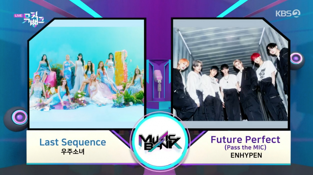 우주소녀는 'Last Sequence'로, ENHYPEN은 'Future Perfect'로 나란히 1위 후보로 경쟁한다.