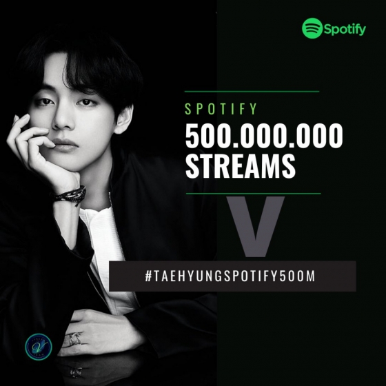 세계 최대 음원 플랫폼 스포티파이(Spotify)에서 뷔의 개인 페이지에 수록된 드라마 OST 'Christmas Tree', 'Sweet Night', '죽어도 너야(It's Definitely You)' 등 3곡과 'Instrumental'이 7월 14일 총 5억 스트리밍을 돌파했다.