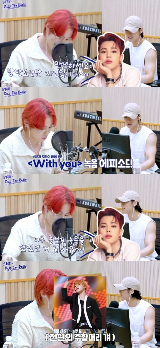 지민은 21일 방송된 KBS 라디오 쿨FM '비투비의 키스 더 라디오'에 하성운과의 전화 연결로 출연해 자신의 첫 OST 'With You' 녹음 비하인드를 공개했다.