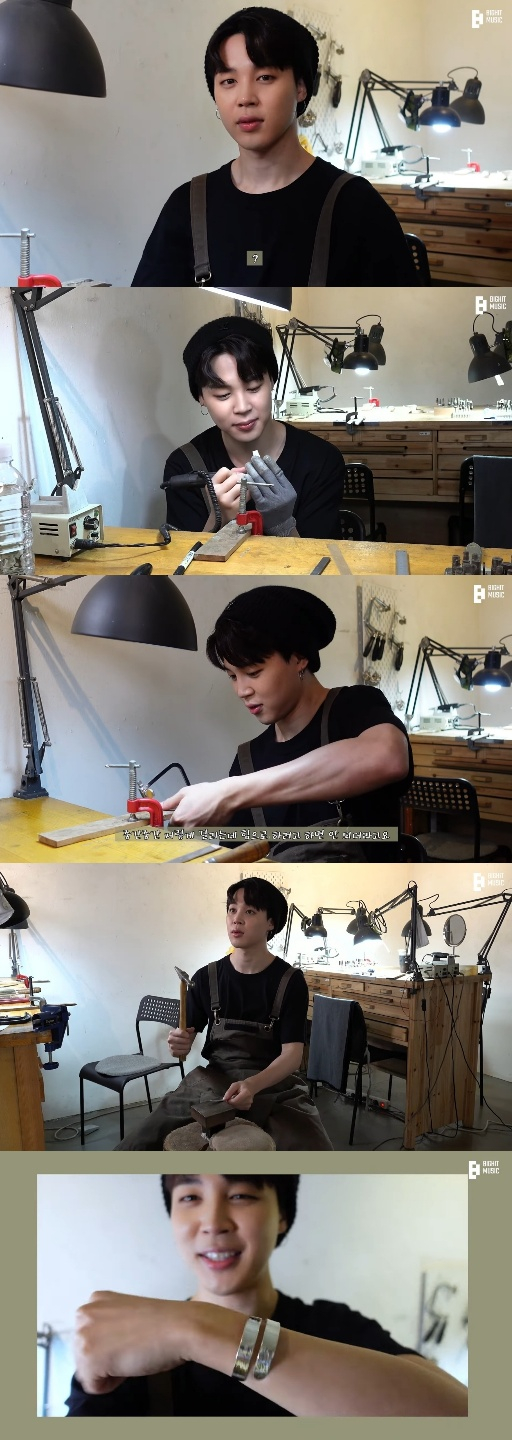 지민은 팔찌 만들기에 처음 도전하는 만큼 전문가의 도움을 받아 시종일관 예의바르게 감사의 마음을 전하며 줄톱과 핸드 드릴, 망치 등을 이용해 안전하게 차근차근 진행해나갔다.