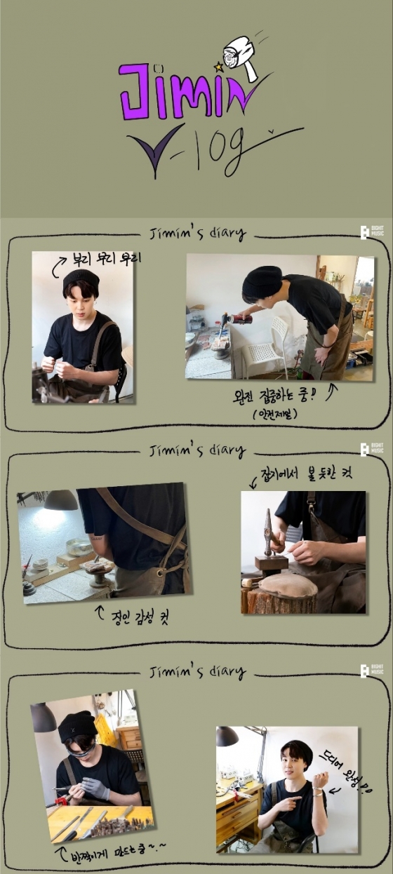 방탄소년단(BTS) 지민이 애교 가득한 금손 인증 공방 체험 브이로그로 팬심을 녹였다.
