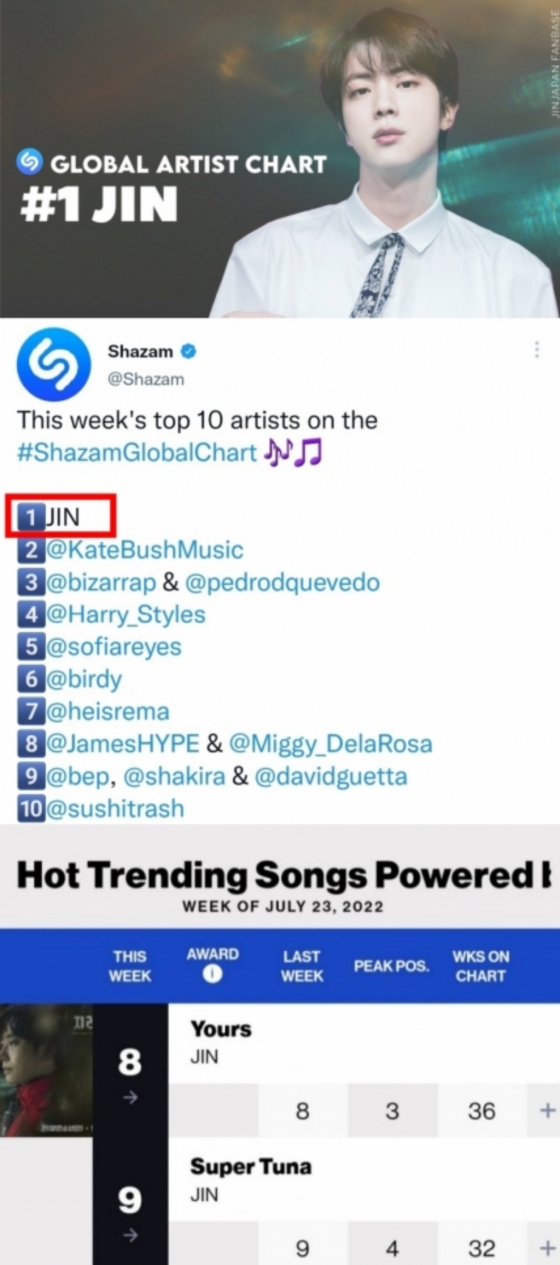 진은 자신의 생일을 맞아 깜짝 발표한 '슈퍼참치'(SuperTuna)로 전 세계에 큰 반향을 일으키며 폭발적인 반응을 이르켰다.