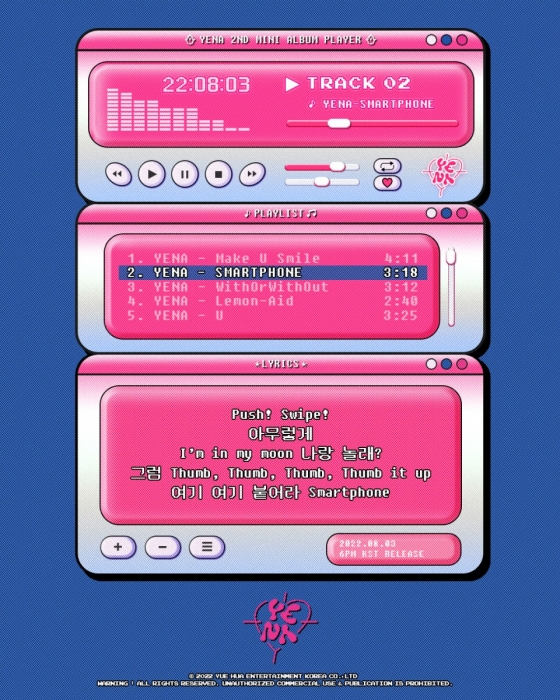 한편 최예나의 두 번째 미니앨범 'SMART PHONE'은 8월 3일 오후 6시 각종 온라인 음원 사이트를 통해 발매된다.