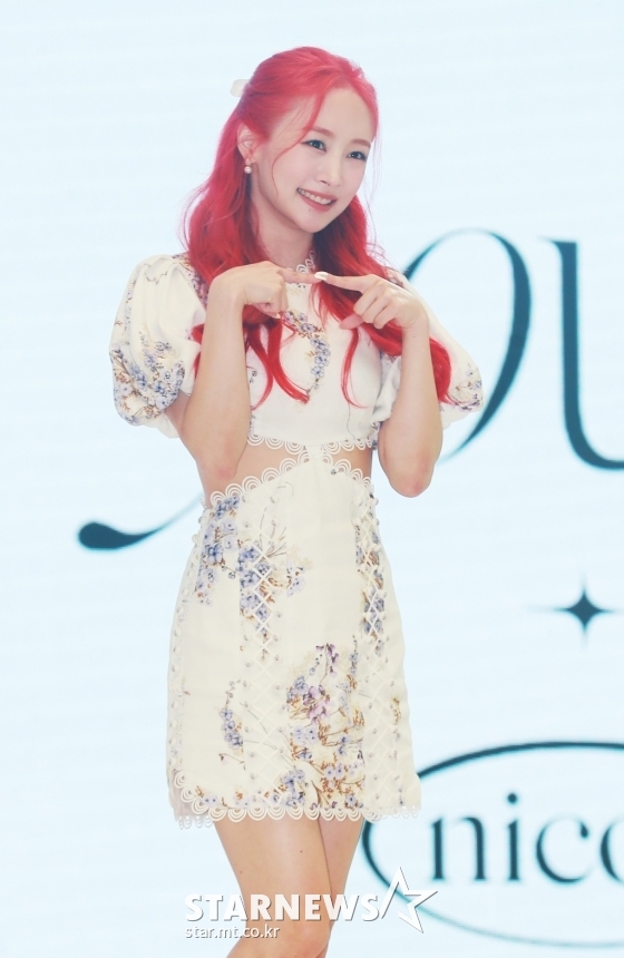 가수 니콜이 26일 오전 서울 중구 크레스트72에서 진행된 새 디지털 싱글 '유에프오'(YOU,F,O) 발매기념 기자간담회에서 포즈를 취하고 있다. /사진=이동훈 기자