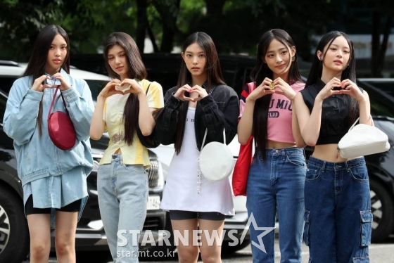 그룹 뉴진스(NewJeans) 민지, 하니, 다니엘, 해린, 혜인이 5일 오전 서울 여의도 KBS공개홀에서 진행되는 '뮤직뱅크' 출연을 위해 도착하고 있다. 2022.08.05 /사진=임성균 기자 tjdrbs23@