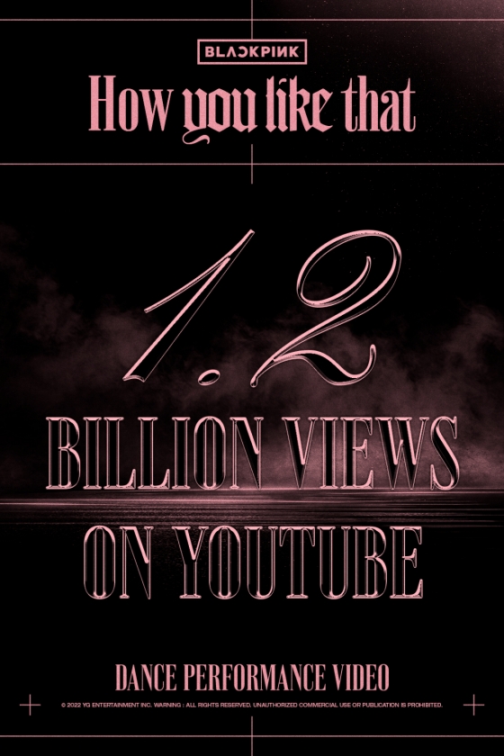 아울러 블랙핑크는 유튜브에서 12억뷰 이상 영상을 총 4편 보유한 그룹이 됐다. 'How You Like That' 안무 영상에 앞서 현재 20억뷰를 향해 가고 있는 '뚜두뚜두(DDU-DU DDU-DU)' 'Kill This Love' (16억뷰), '붐바야' (14억뷰) 뮤직비디오가 있었다.