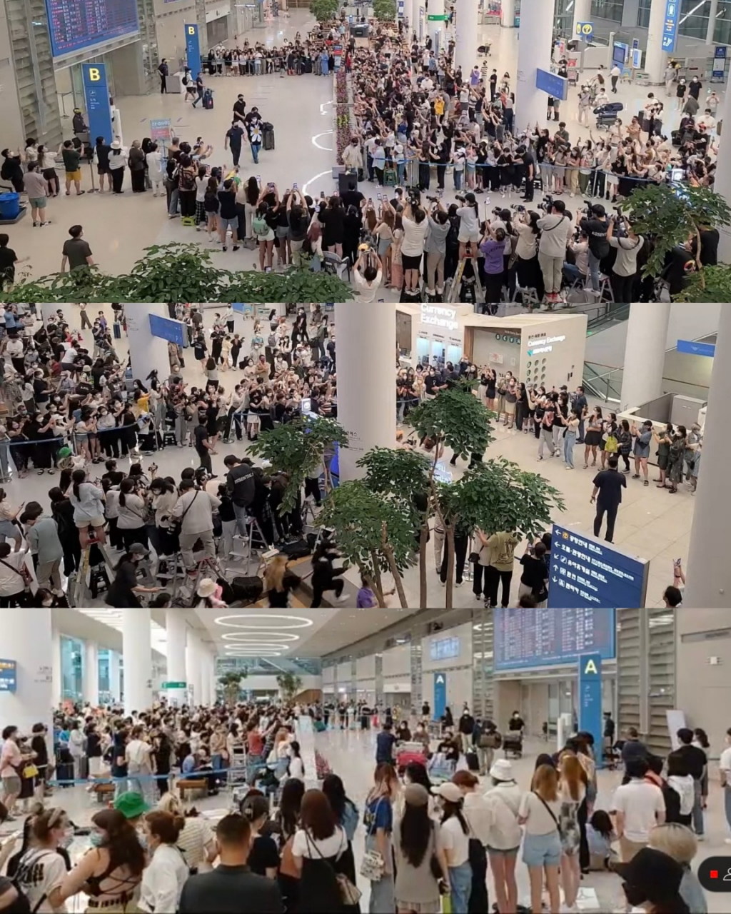 이날 공항에는 멤버 지민의 단독 입국이 믿기 어려울 정도로 문이 열려 지민이 나오는 곳부터 이동 차량이 서 있는 곳까지 수백명의 팬들이 공항 내 양쪽 사이드, 1층과 2층 등 사빙을 가득 메우고 지민이 등장하자 카메라 후레쉬와 함성이 터졌다.