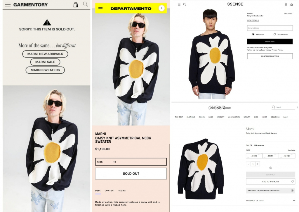 유독 하얀 피부에 길고 우아한 목선, 어깨선까지 이어지는 명품 바디핏을 자랑한 마르니 브랜드의 니트 상의는, 고가임에도 불구하고 공식 홈페이지 및 여러 판매 사이트에서 품절로 이어지며 매진 행렬을 이뤘다.
