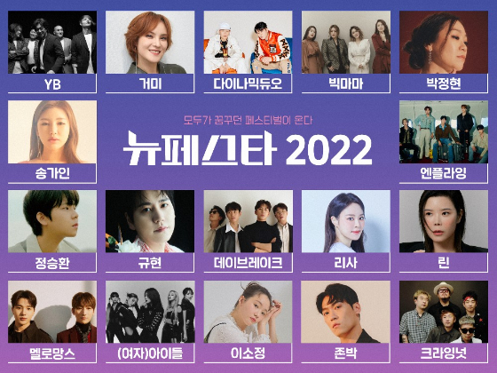 목소리만으로도 올림픽공원 88잔디마당을 가득 채울 구성의 이번 라인업은 올(ALL)장르가 한 자리에 모이고, 장르불문 최정상급 아티스트들이 모여 만들어가는 새로운 페스티벌이라는 '뉴페스타 2022'의 모토를 잘 보여준다.