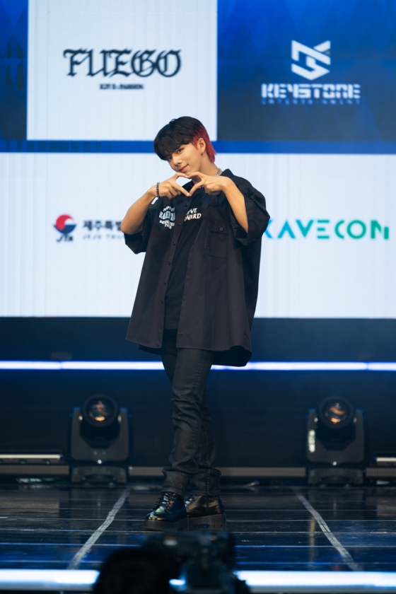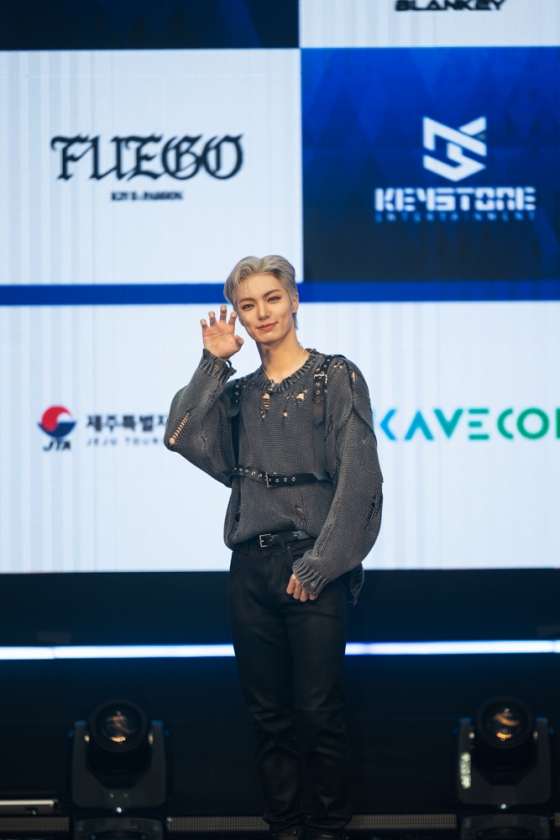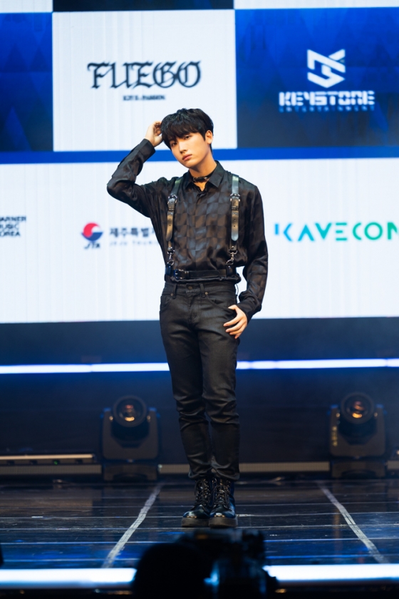 시우는 "첫 번째 앨범의 R, 두 번째 앨범의 U를 포함해 세 번쨰 앨범의 알파벳까지 조합하면 큰 의미가 있다. 그걸 찾아보는 재미가 있을 것"이라고 'K2Y' 1, 2, 3 시리즈 앨범의 의미에 대해 말했다. 타이틀곡 '푸에고'에 대해 영빈은 "웅장한 드럼 비트와 이국적인 분위기가 특징이다. 저희의 에너지로 가득 채웠다"고 소개했다. 멤버들은 이와 함께 '불'을 뜻하는 포인트 안무를 선보였다.