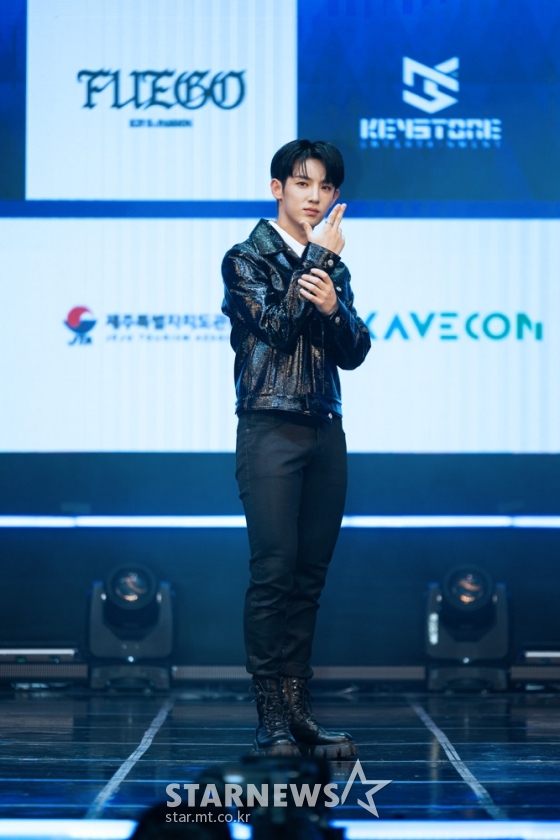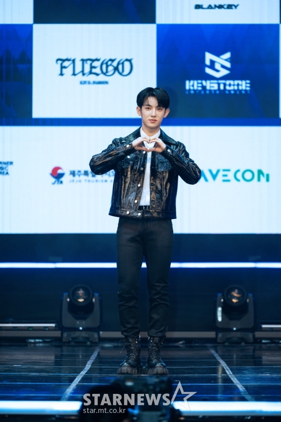그룹 블랭키(BLANK2Y) 시우가 24일 오전 서울 광진구 건국대학교 새천년관 대공연장에서 진행된 두 번째 미니 앨범 'K2Y II : PASSION [FUEGO]'(키투 패션 푸에고) 발매 기념 쇼케이스에 참석해 포즈를 취하고 있다.