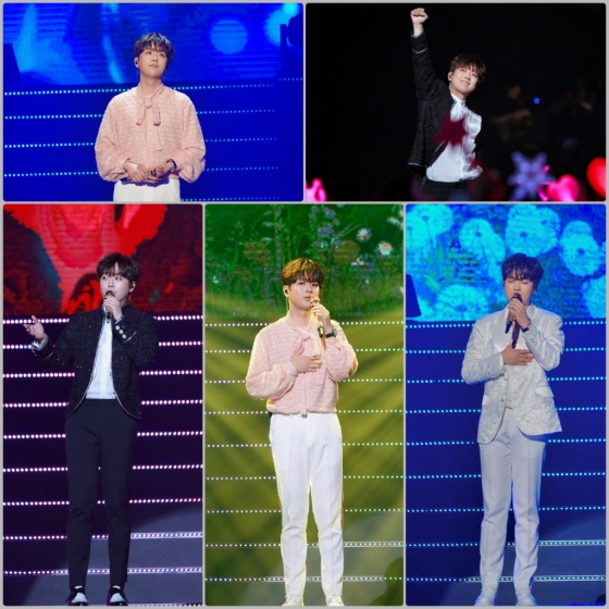 사진 속 이찬원은 올 실켓 화이트 수트부터 블랙 스팽글 재킷까지 다양한 무대 의상으로 '트롯 프린스'다운 고급스러운 자태를 뽐냈다. 팬덤 색인 로즈골드 빛 블라우스를 차려입고 열창하는 이찬원의 모습에서는 순수하면서도 섹시한 면모가 빛났다.