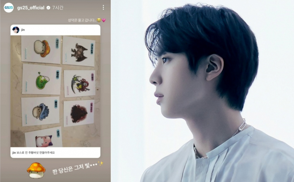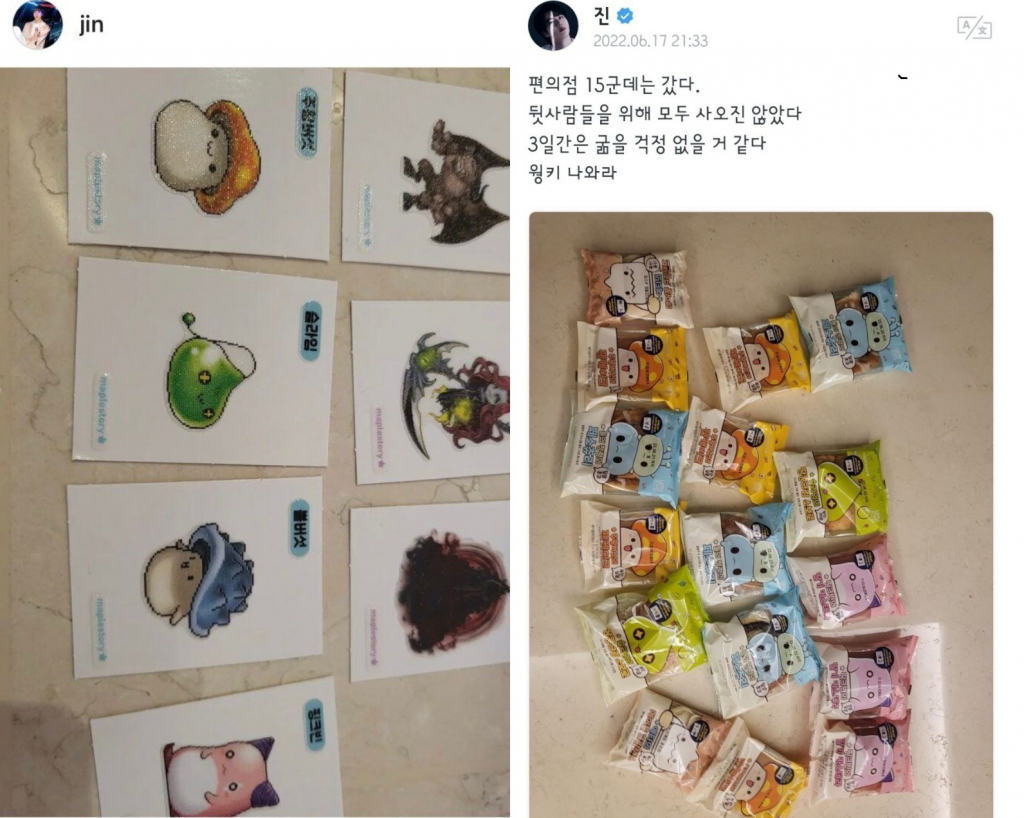 진은 어릴 때부터 메이플스토리(MapleStory) 게임을 해온 팬으로서 지난 6월 출시되자마자 메이플스토리 캐릭터가 그려진 빵 16개와 스티커를 인증했었다.