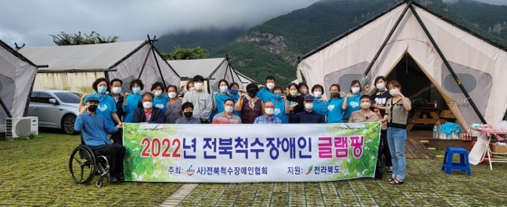 '영웅시대 전북방' 회원들은 후원금 전달 후 이날 협회에서 주관, 무주빨강치마글램핑장에서 진행된 척수장애인 글램핑 활동에 참여해 자원봉사활동도 했다.