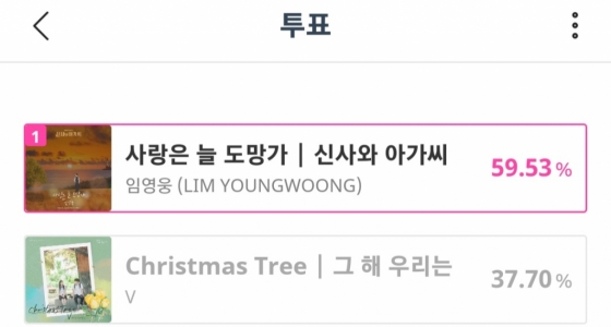 임영웅의 '사랑은 늘 도망가'는 59.53%의 과반수 득표율로 1위를 기록했다.