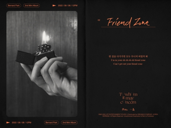 버나드 박은 오는 6일 새 미니앨범 '투 훔 잇 메이 컨서언'(To whom it may concern)을 발표한다. 이에 앞서 소속사 JYP엔터테인먼트는 1일 0시 공식 SNS 채널에 버나드 박 미니 2집 수록곡 '프렌드 존'(Friend Zone)과 '행복한 사람' 가사 일부를 공개하고 컴백 기대감을 높였다.