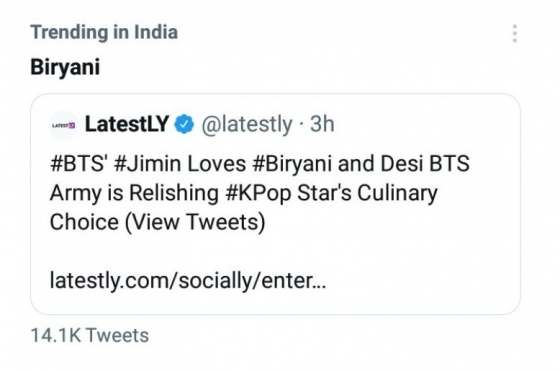 지민의 댓글 이후 인도 트위터를 강타해 실시간 트렌드에 'Biryani'가 그즉시 트렌딩되었으며, 'India.com', 'Latestly', 'OpIndia.com', 'Bollywood Life', 'Clout News' 등의 외신들이 발빠르게 이 소식을 전해 지민의 막강한 글로벌 영향력을 실감케했다.
