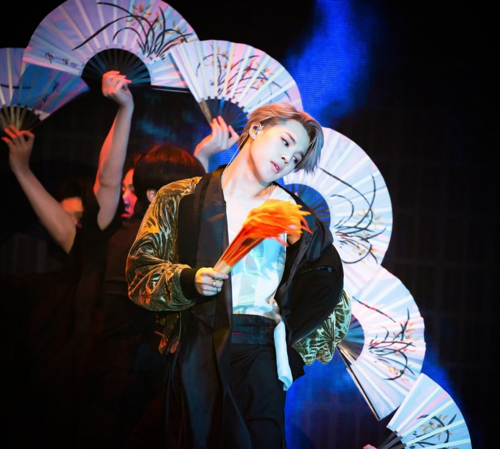 지민은 '2018 멜론뮤직어워드'에서 부채춤 퍼포먼스를 펼쳐 단 1분 남짓의 짧은 무대에도 포털사이트 검색어 1위를 차지할만큼 큰 화제를 모았으며 평안남도 무형문화재 제3호 김백봉 부채춤 보존회로부터 감사패를 받기도 했다.