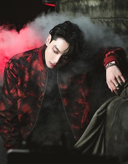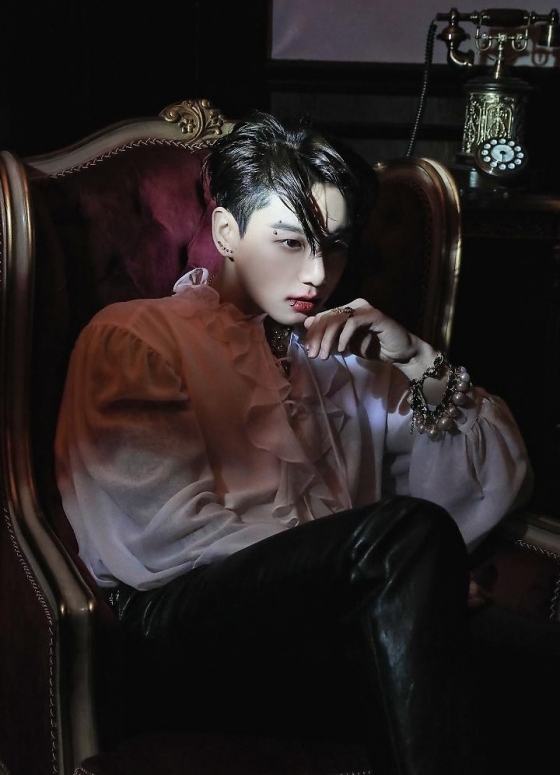 공개된 사진에서 정국은 뱀파이어 콘셉트의 화보를 대비되는 두 가지 매력으로 환상적으로 소화했다.