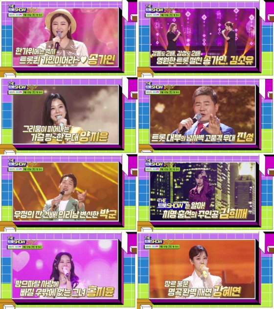 이날 '더 트롯쇼'에는 송가인, 김소유, 박군, 양지은, 진성, 조항조, 정윤희, 김희재, 강혜연, 김태연, 나상도, 지원이, 도야성, 홍지윤, 장송호, 유지나, 풍금, 김재롱, 하유비, 김희진, 윤서령이 출연한다.