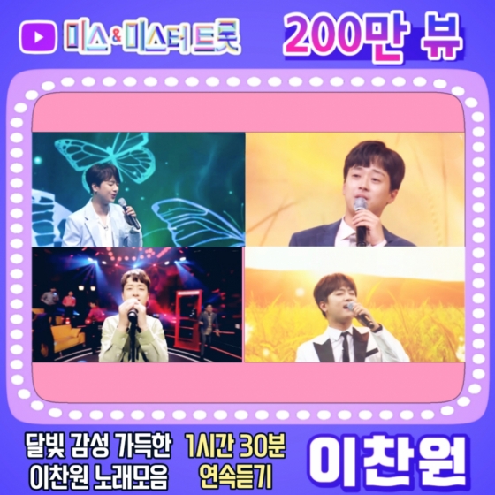지난 2020년 12월 21일 유튜브 채널 '미스&미스터트롯' 계정에 공개된 '달빛 감성 가득한 이찬원 노래모음 1시간 30분 연속듣기' 영상은 9월 13일 기준 조회수 200만 뷰를 넘어섰다.