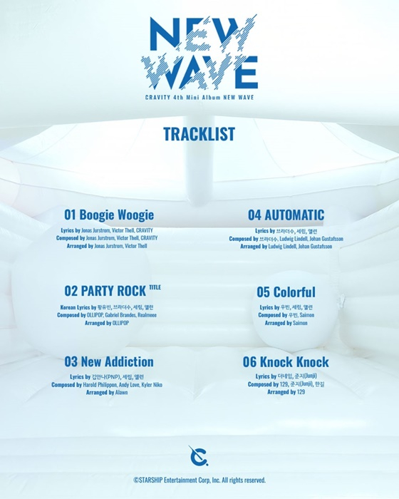 14일 소속사 스타쉽엔터테인먼트에 따르면 크래비티는 지난 13일 공식 SNS를 통해 네 번째 미니앨범 'NEW WAVE'(뉴 웨이브)의 트랙리스트 이미지를 공개했다.